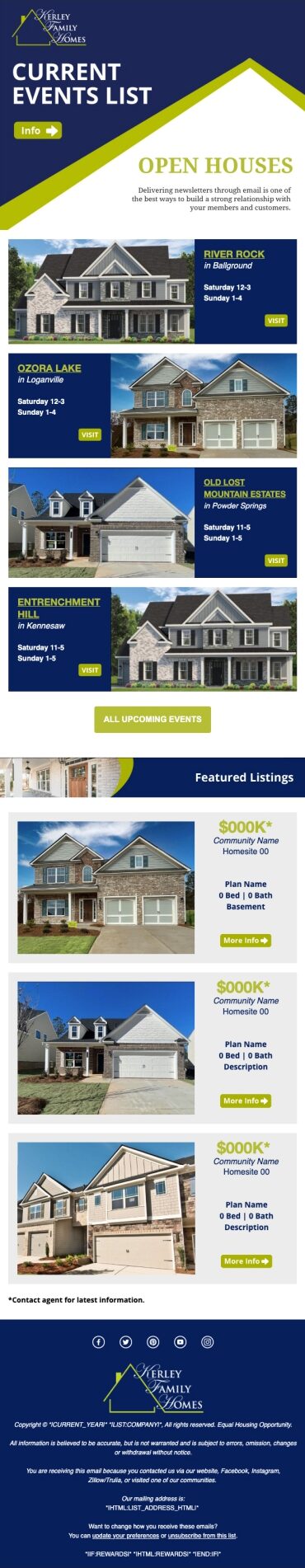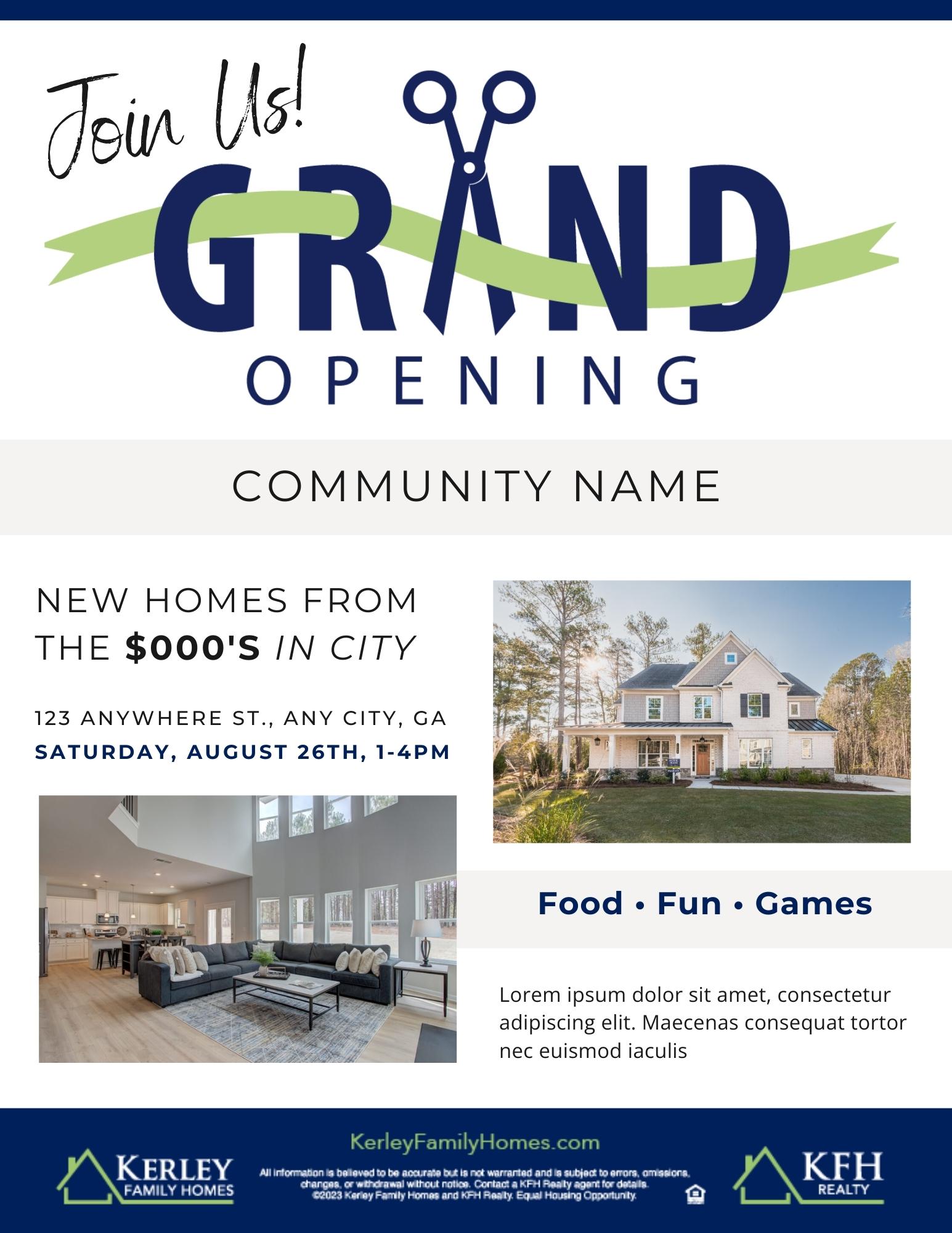 I designed a range of marketing materials including community flyers, event promotions, and agent handouts. I refined layout structure, introduced clearer information hierarchy, and created flexible templates that the Kerley Family Homes team could easily update as new communities and events were released.