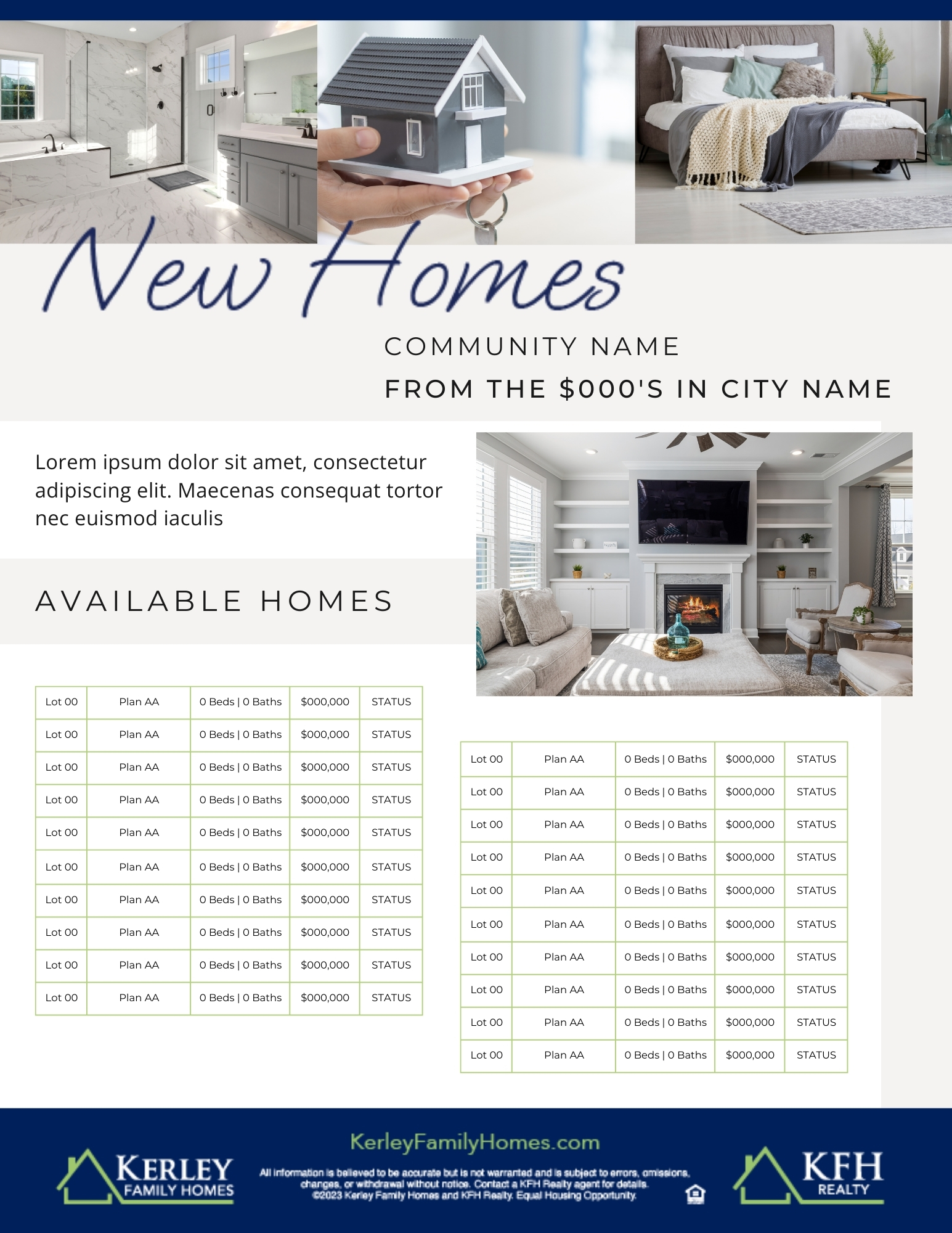Kerley Family Homes needed updated marketing materials for new and existing communities, seasonal events, and sales initiatives. Existing pieces varied in style and clarity, and the sales team needed collateral that could be produced quickly while still staying aligned with the brand.